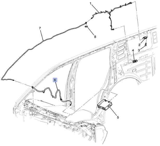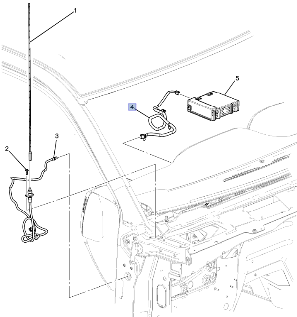 B: GM Radio Antenna amplifier Cable Extension (Door Lock Receiver), Connects 2 & 4.